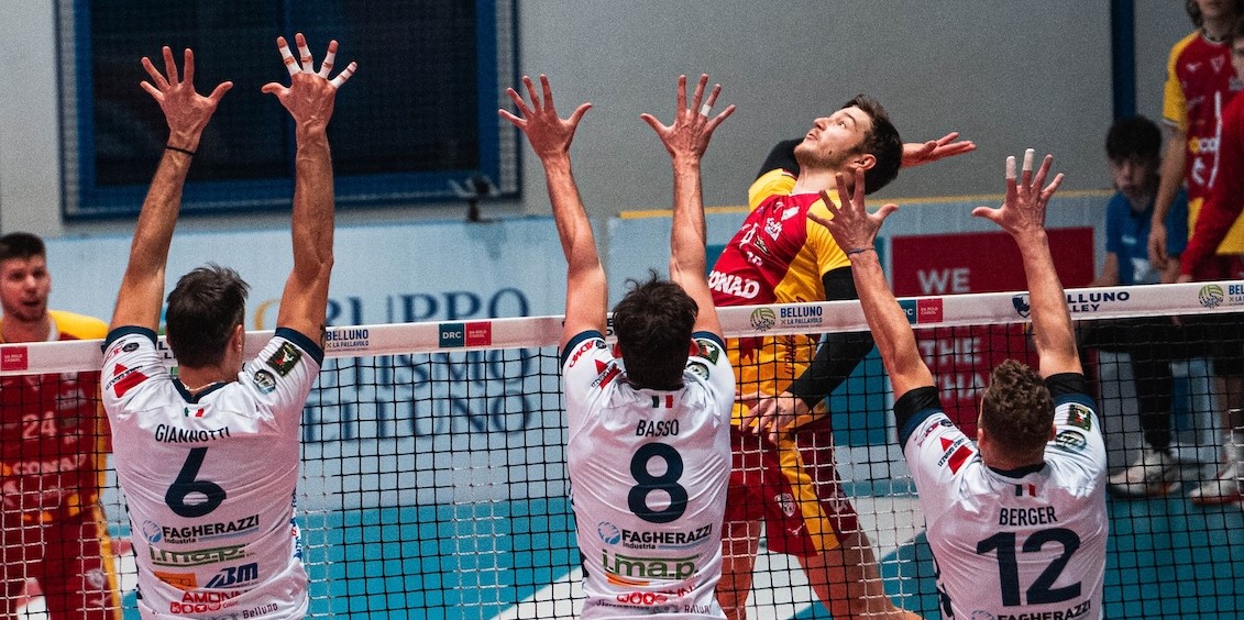 Si ferma la serie positiva del Belluno Volley: alla Vhv Arena la Conad Reggio Emilia vince 3-1, sfrutta il servizio e rafforza il primato, nonostante i 20 punti di Corrado.
