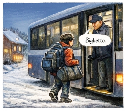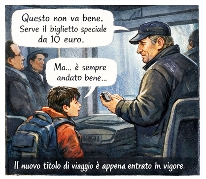 Il primo numero della «Notizia a fumetti» rappresenta la vicenda del bambino rimasto a terra in Valle del Boite in conseguenza dell’aumento del biglietto del bus (poi ritirato su ordine della Provincia di Belluno). Si intitola:
