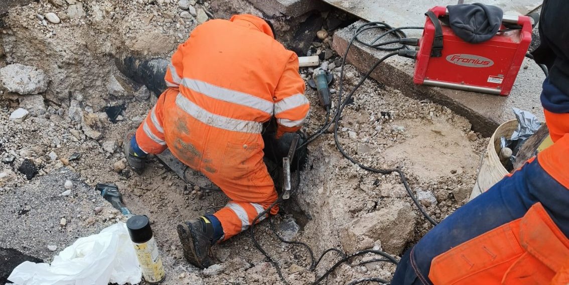 Il guasto si è verificato in via Nongole durante un cantiere. Intervento rapido delle squadre Sib, che hanno avviato scavo e riparazione già in mattinata. Fornitura sospesa per alcune ore e riattivata verso le 15.
