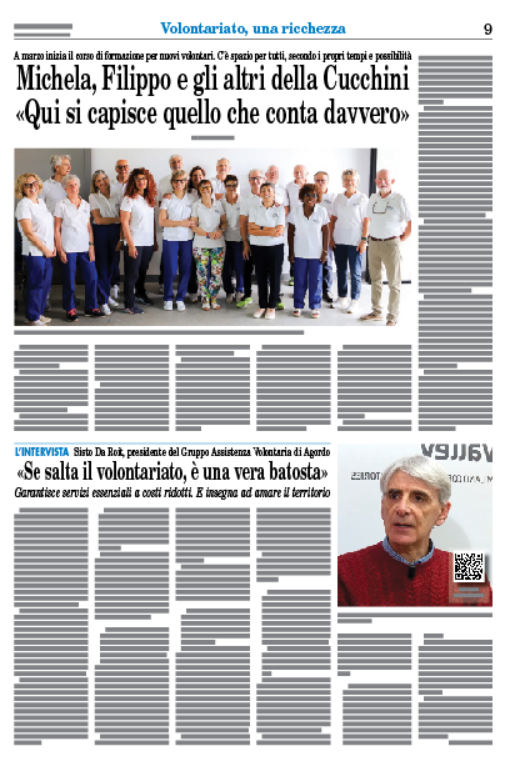 Questa è solo una parte dell’approfondimento dedicato al mondo del volontariato. Sul numero 8 dell’Amico del Popolo di carta, in uscita il 19 febbraio 2026 e in distribuzione questa settimana (su abbonamento, in edizione digitale e in edicola), puoi leggere per intero l’articolo di Elisa Strano sull’Associazione Cucchini e l’intervista a Sisto Da Roit, presidente del GAV di Agordo, a cura di Irene Dal Mas.