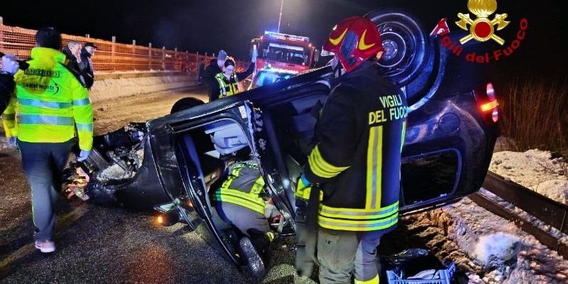 L’incidente è avvenuto intorno alle 19.30. Il conducente, rimasto nell’abitacolo, è stato estratto dai Vigili del fuoco e affidato al Suem. Traffico ripristinato alle 21.10.