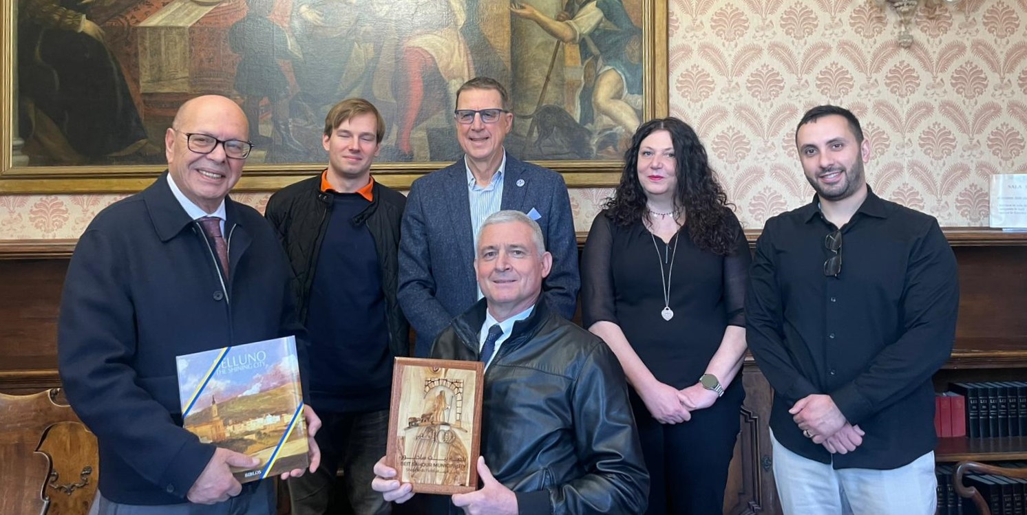 Si è svolto nella mattinata di venerdì 27 febbraio, a Palazzo Rosso, l’incontro tra il sindaco di Belluno, Oscar De Pellegrin, e il sindaco di Beit Sahur, Elias Iseed, in visita istituzionale in Italia. Con il primo cittadino palestinese era presente Yousef Qumseya, economic development specialist del Comune. All’appuntamento hanno partecipato anche il vicesindaco Paolo Gamba e l’assessore Roberta Olivotto.