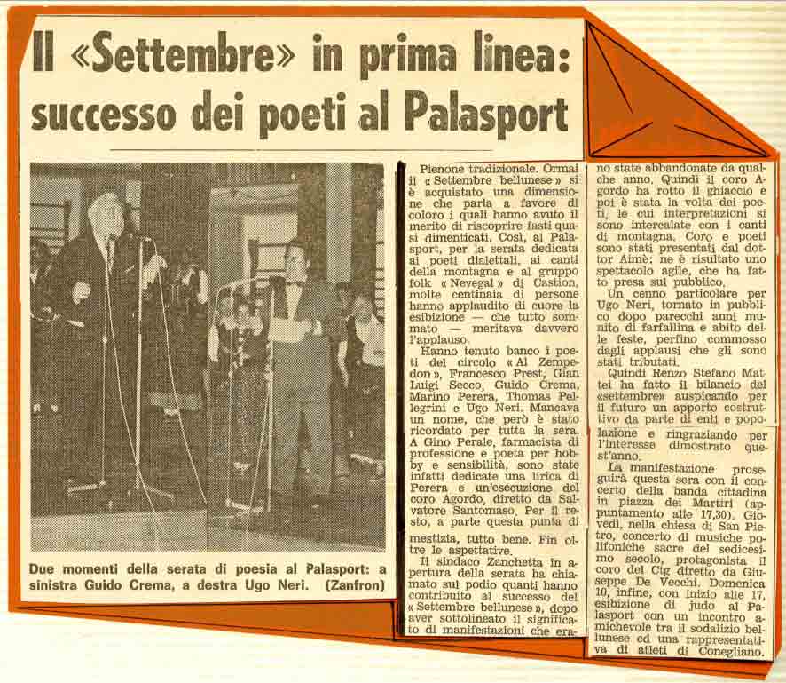 In occasione del settembre [4] bellunese, i poeti dialettali del Circolo Zempedon aderirono in massa alla rappresentazione organizzata al Palasport, che riprendeva una tradizione interrotta.