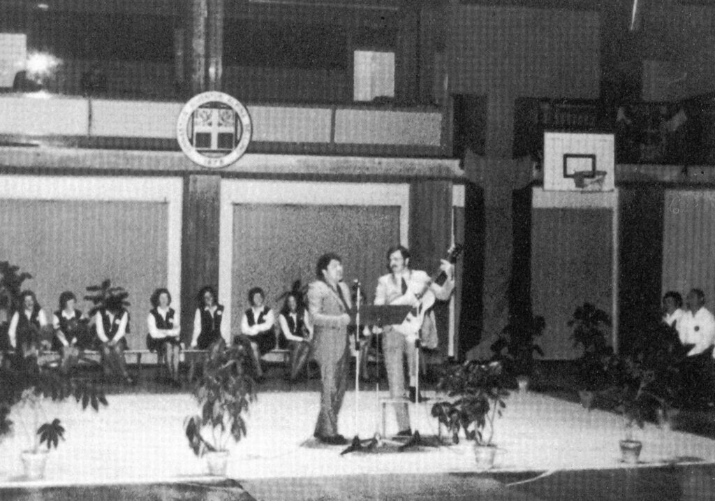 Al momento della esibizione la coppia non aveva ancora un nome specifico al che il presentatore, che era il Direttore Didattico Aldo Aimè, ci chiese come dovesse presentare: scegliemmo il più semplice dei nomi che potevano capitare in mente: I Belumat ossia ‘I Bellunesi’. Ottenemmo un incredibile apprezzamento da parte del pubblico e molti si augurarono di vederci presto ancora cantare … e perché no! Ma con che repertorio?
