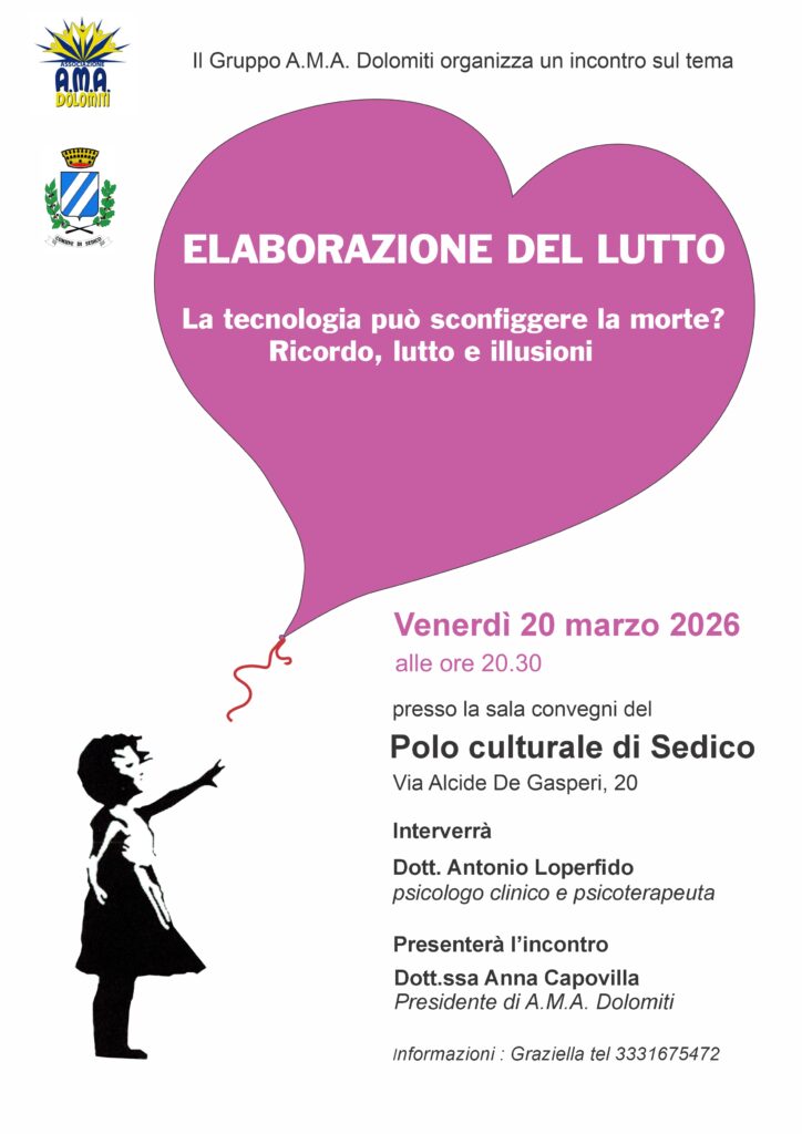 L’iniziativa nasce con l’intento di stimolare una riflessione collettiva su come si affronta la perdita di una persona cara e su come strumenti digitali e intelligenza artificiale stiano modificando il modo di mantenere un legame simbolico con chi non c’è più. L’evento vuole inoltre incoraggiare la conoscenza e la partecipazione ai gruppi di auto‑mutuo aiuto promossi dall’associazione Ama Dolomiti, tra cui il percorso recentemente avviato proprio a Sedico.