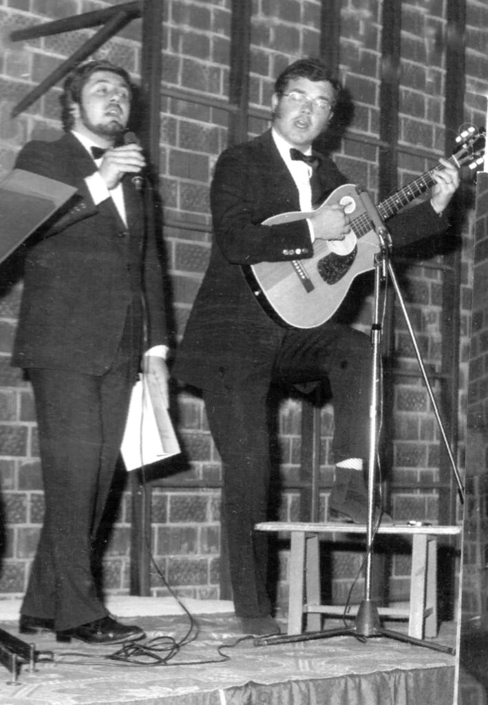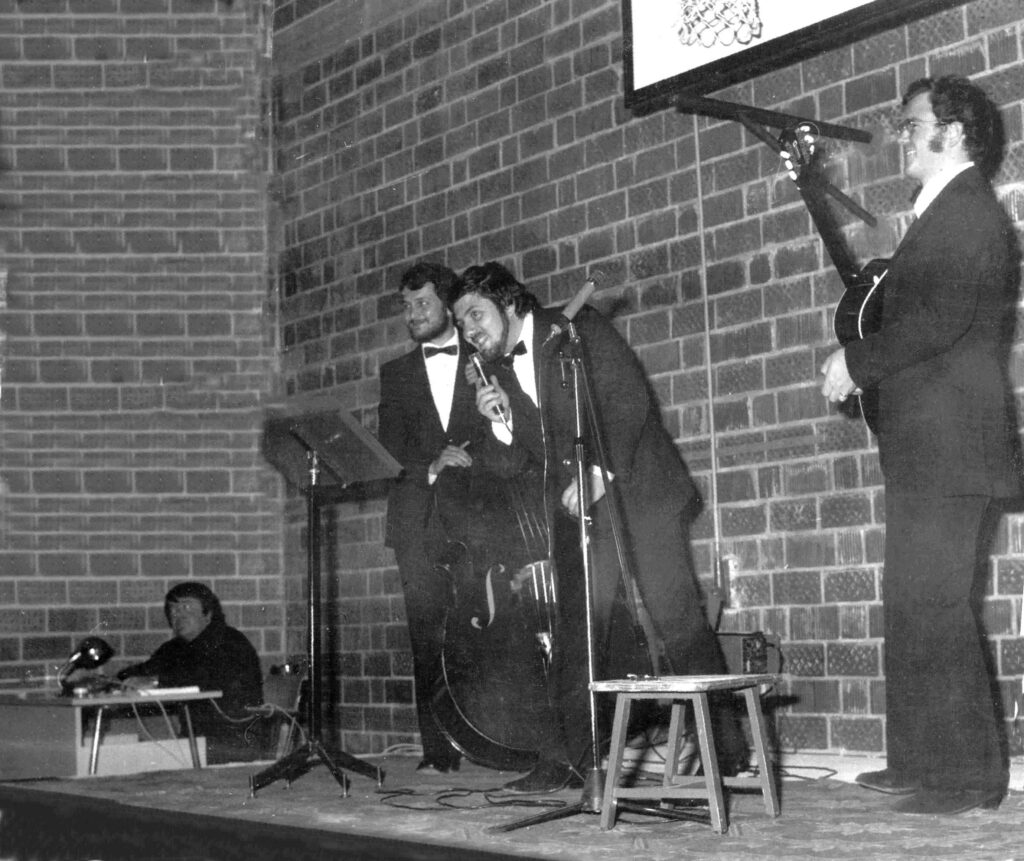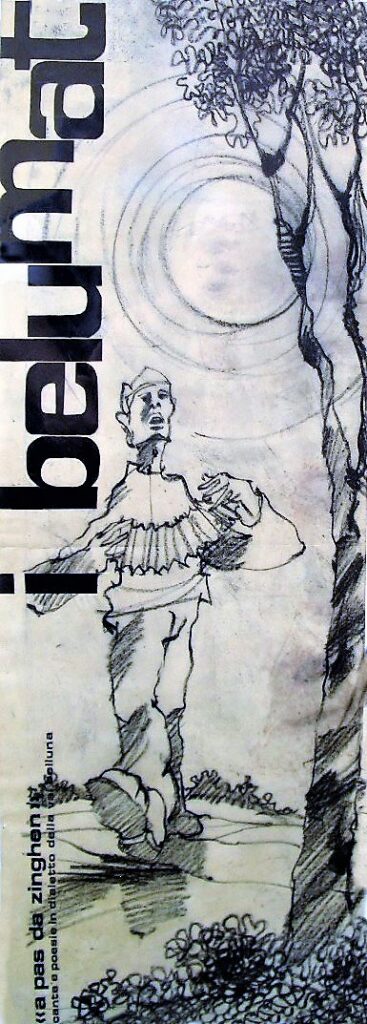 Visto il libro in corso, pensai che a musicare alcune poesie e a inserirle in una scaletta logica si sarebbe potuto realizzare anche uno spettacolo per i Belumat. Feci la proposta a Giorgio che ne fu entusiasta e propose a sua volta di coinvolgere Bube[7] perché un contrabbasso sarebbe stato sicuramente utile. Pensai anche di interessare Loris Santomaso proponendogli di fare la voce fuori campo, dato che la sua era profonda e sonora. Inoltre estrapolando i materiali utili dal libro madre, si poteva con poche integrazioni, stampare un libretto[8] del futuro recital da dare agli spettatori: una cosa al tempo, meglio di quelli della lirica!