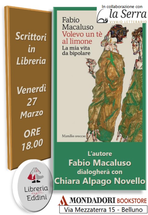 Venerdì 27 marzo alle ore 18, presso la libreria degli Eddini in via Mezzaterra, si terrà la presentazione del libro Volevo un tè al limone di Fabio Macaluso, pubblicato da Marsilio Editore. L’iniziativa è organizzata in collaborazione con “La Serra – Vivaio letterario”. A dialogare con l’autore sarà Chiara Alpago Novello.