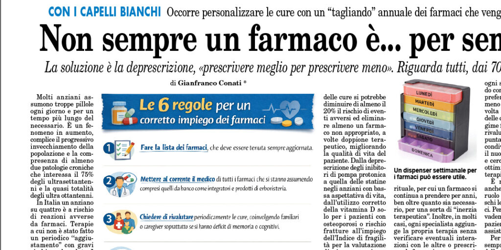 Di Gianfranco Conati. Occorre personalizzare le cure con un ‘‘tagliando’’ annuale dei farmaci che vengono assunti