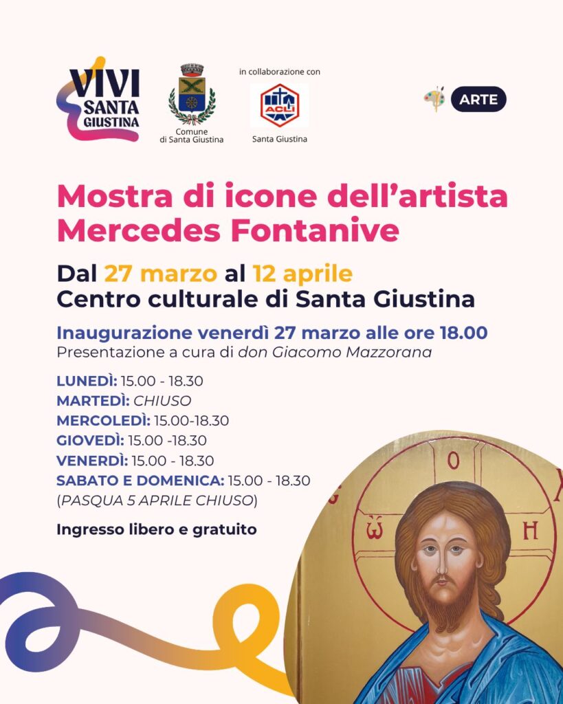 È stata inaugurata ieri, venerdì 27 marzo, presso il Centro culturale di Santa Giustina, una mostra dedicata alle icone di Mercedes Fontanive, da decenni dedicata allo studio e all’arte dell’iconografia. All’inaugurazione, avvenuta ieri, è intervenuto monsignor Giacomo Mazzorana, rinomato studioso di storia dell’arte.
