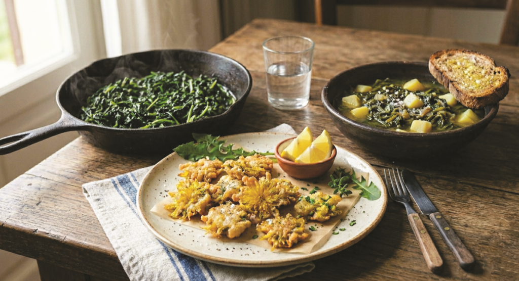 Fino a due generazioni fa, saper riconoscere il tarassaco nei prati era una competenza primaria: fa parte, infatti, di quelle erbe spontanee che si possono cogliere e mangiare, assieme al rosolaccio, alle ortiche e alla cicoria selvatica. Quel misto di campo, in cui erbe amare venivano accostate a erbe più dolci, rappresentava un pasto. Bastava tritarle e appassirle in un grasso (burro, olio o lardo), con abbondante cipolla.