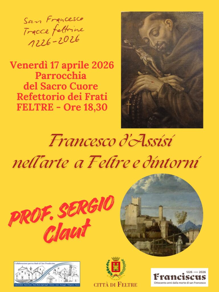 In occasione del percorso giubilare dell’anno dedicato a San Francesco d’Assisi, presso il Refettorio dei Frati, della Parrocchia del Sacro Cuore si terrà una conferenza dedicata all’arte francescana in particolare a Feltre, ma allargando lo sguardo alla provincia. Sarà un percorso attraverso arte e architettura: segni della permanenza a Feltre e dintorni dei frati minori e come, anche attraverso le raffigurazioni di san Francesco d’Assisi, è stato recepito il messaggio e il cuore della sua scelta evangelica. Vorrà essere un’occasione in cui scoprire con sorprese ancora inedite quanto la regola e il messaggio di San Francesco sia stata punto di riferimento e di spiritualità a livello popolare, suscitando vocazioni nei conventi di Feltre e del territorio fino alla Valsugana.