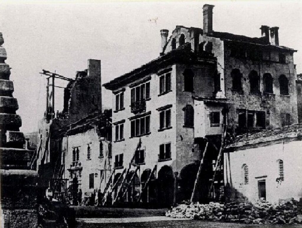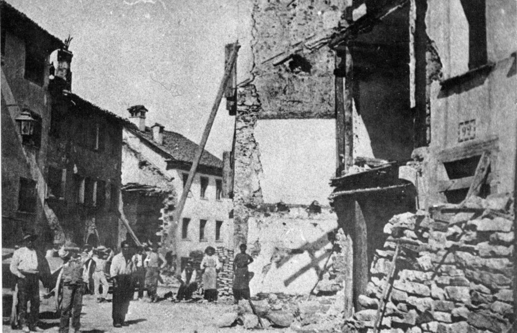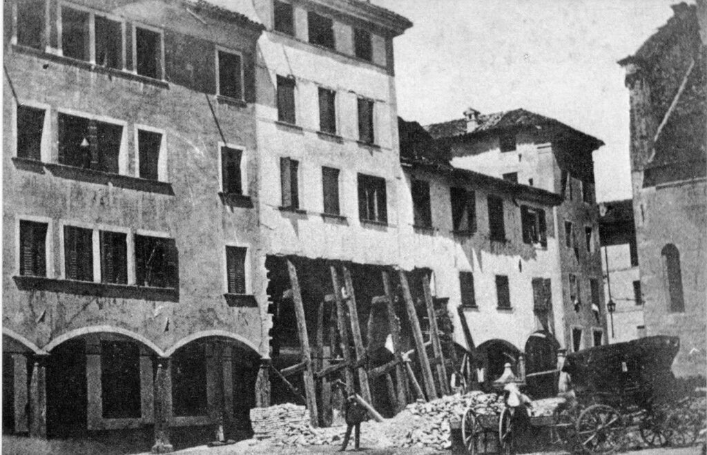 Sapevo di abitare in una provincia ‘ballerina’ perché mia nonna mi raccontava dell’evento del ’36 e di tutta la famiglia che aveva trovato conforto notturno per alcuni giorni nelle carrozze ferroviarie della stazione di Belluno. Quando poi ho visto le foto del 1887, solo allora mi è venuta la paura che un possibile nuovo evento del genere mi potesse capitare[3]. Mi consola il fatto che le strutture nuove, dicono, sono adeguate … speriamo bene, dato che via Garibaldi, dove abito io, stava quasi in rovina, a guardare le foto e tutta la città era malridotta: il Duomo crollato, il palazzo Vescovile … un vero disastro insomma.