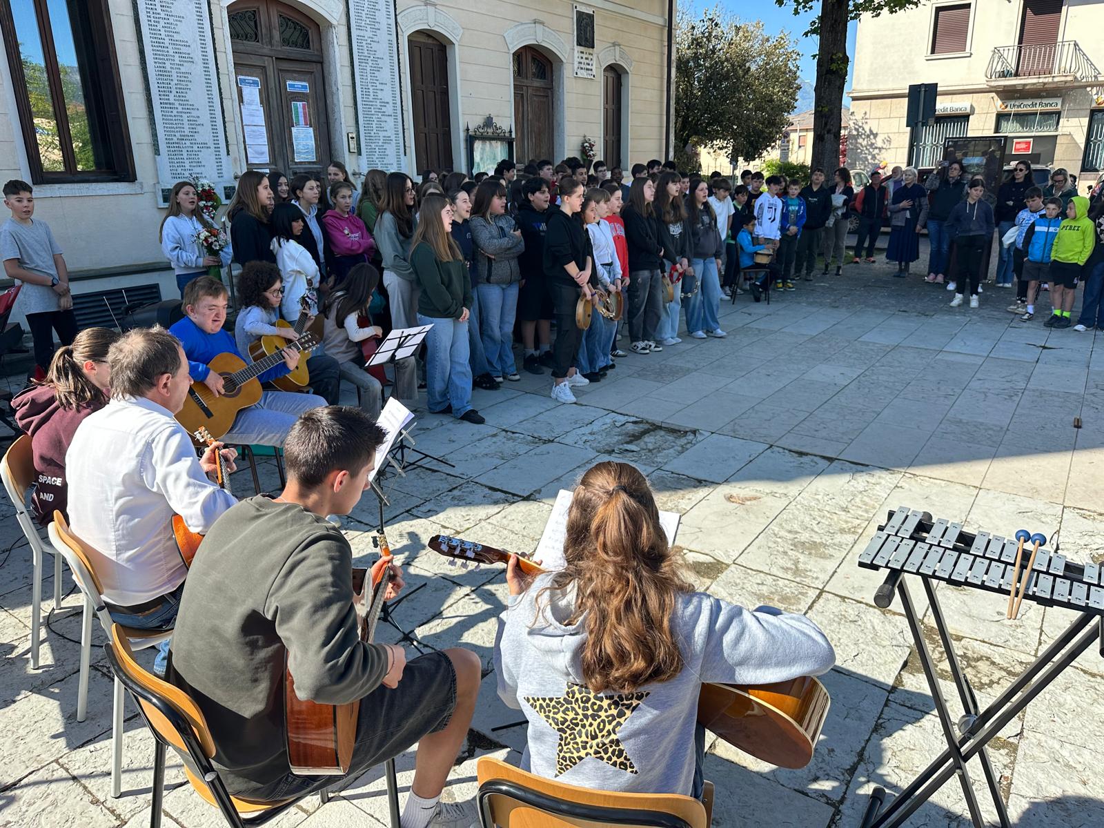 La mattinata si è conclusa con l’esibizione degli studenti dell’indirizzo musicale, guidati dal professor Stefano Brancaleone e dall’insegnante Erika De Bortol, che hanno eseguito l’Inno d’Italia, l’Inno alla Gioia, “Bella Ciao”, “Blowin’ in the Wind” di Bob Dylan e “La luna di Kiev” di Rodari, nella versione musicata dal maestro Manolo Da Rold, proposta come possibile inno dell’Istituto Comprensivo di Mel e Lentiai.