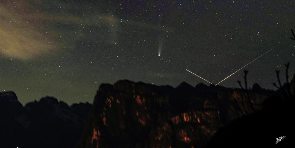 Agordino 1 minuto Una cometa tra le Pale di San Lucano Una cometa in tramonto sulle Pale di San Lucano con due meteore in intersezione. ambiente