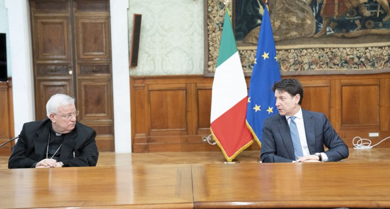Italia ↗ 3 minuti Torneranno dal 18 maggio le celebrazioni liturgiche con il popolo Firmato a Palazzo Chigi da Governo e Cei (Conferenza episcopale italiana) il protocollo sulle misure da adottare per garantire la sicurezza (nella foto il cardinale Bassetti e il premier Conte). chiesa