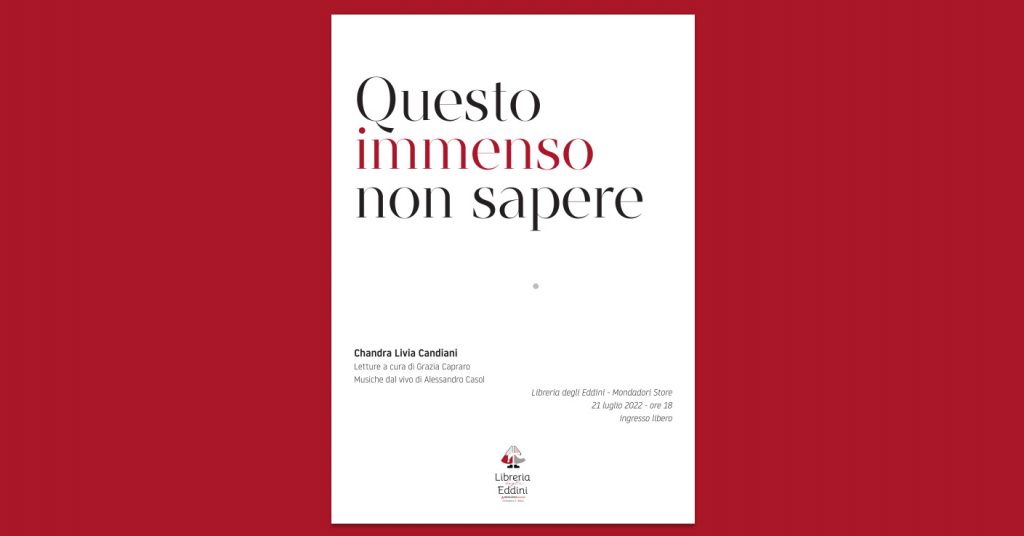 Belluno ↗ 1 minuto Giovedì 21 «Questo immenso non sapere» La Libreria degli Eddini propone un reading dal libro di Chandra Livia Candiani. libri