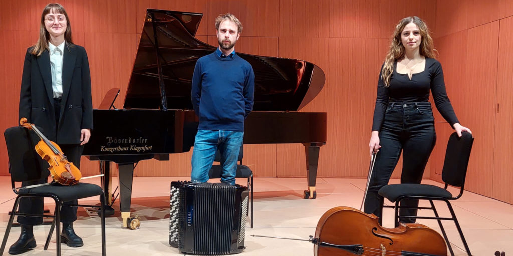 Cadore 1 minuto Il Kla(N)g Trio sabato 31 nella chiesa Nostra Signora del Cadore di Borca Natalija Tripković, Melina Karampali e Maurizio de Luca eseguiranno brani di Kancheli, Gubaidulina, Rihm e Durighello musica