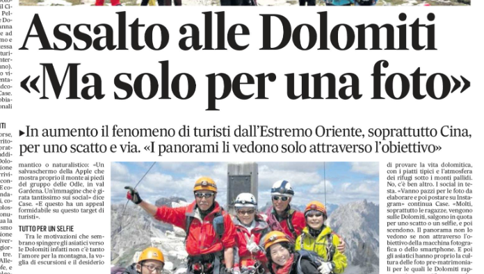 Sempre più asiatici sulle Dolomiti, ma solo per una foto da postare sui social. La rassegna di lunedì 15 settembre ►VIDEO